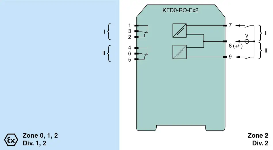Pepperl+Fuchs KFD0-RO-Ex2 Relay Module 2-channel isolated barrier 24 V DC supply (loop powered) Logic input 15 V DC ... 30 V DC, non-polarized Relay contact output Up to SIL 3 acc. to IEC/EN 61508 www.pepperl-fuchs.com/en/products-gp25581/2189