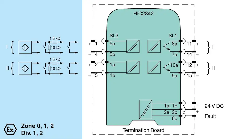 Pepperl+Fuchs HiC2842 Switch Amplifier 2-channel isolated barrier 24 V DC supply (bus powered) Dry contact or NAMUR inputs 2 passive transistor outputs Line fault detection (LFD) Reversible mode of operation Up to SIL 2 (SC 3) acc. to IEC/EN 61508 www.pepperl-fuchs.com/en/products-gp25581/42158
