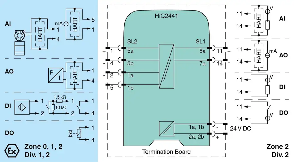 Pepperl+Fuchs HiC2441 SMART Universal Barrier 1-channel isolated barrier 24 V DC supply (bus powered) Analog input, digital input, analog output, digital output No configuration required, device is self-adapting HART transparency Low power dissipation 3-way isolation Up to SIL 2 acc. to IEC/EN 61508 www.pepperl-fuchs.com/en/products-gp25581/93132