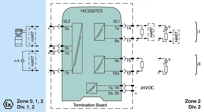 Pepperl+Fuchs HiC2027ES SMART Transmitter Power Supply 1-channel isolated barrier 24 V DC supply (bus powered) Input for 2-wire SMART transmitters and current sources Signal splitter (1 input and 2 outputs) Dual output 0/4 mA ... 20 mA or 0/1 V ... 5 V Up to SIL 3 acc. to IEC/EN 61508 www.pepperl-fuchs.com/en/products-gp25581/73940