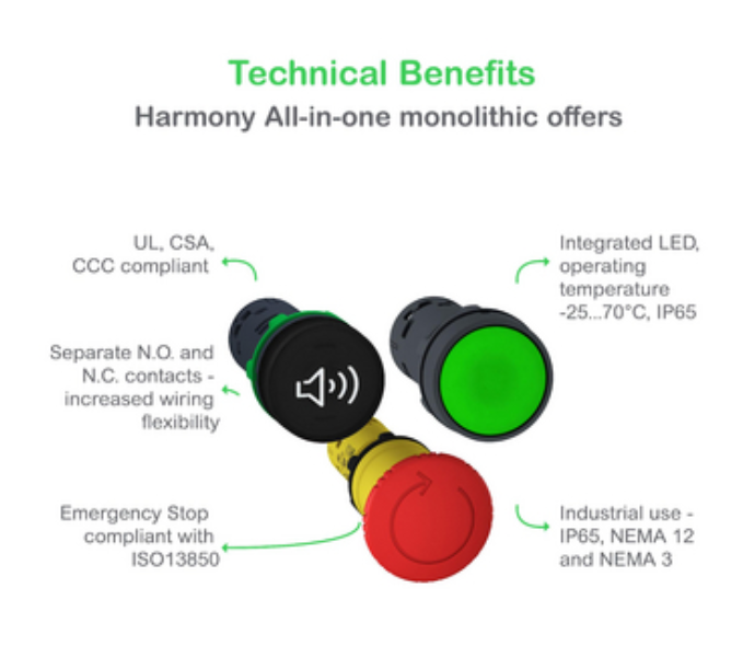 Designed to fit in a standard 22mm cut-out ensuring compatibility with pre-existing machinery