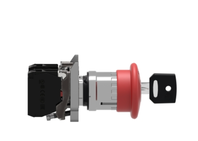 Emergency stop push button, Harmony XB4, metal, red mushroom, 40mm, 22mm, trigger latching key release, 1NO+1NC www.se.com/us/en/product/XB4BS9445/emergency-stop-push-button-harmony-xb4-metal-red-mushroom-40mm-22mm-trigger-latching-key-release-1no+1nc/