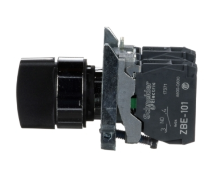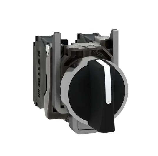 Selector switch, metal, black, Ø22, 3 positions, spring spring return, 2 NO www.se.com/eg/en/product/XB4BD53/selector-switch-metal-black-%C3%B822-3-positions-spring-spring-return-2-no/
