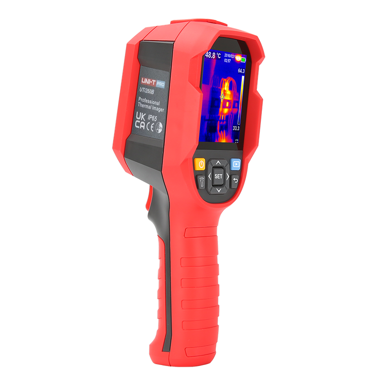 UTi260B is a featured product of UNI-T heavy duty series thermal cameras. It is cost effective and with a wide temperature range: -20℃~550℃. It has higher IR resolution: 256×192 pixels than other models, and includes 7 color palettes and four display modes: thermal, visual image, fusion, and picture in picture. It is also user friendly and rugged enough to pass IP65 and 2m drop test.