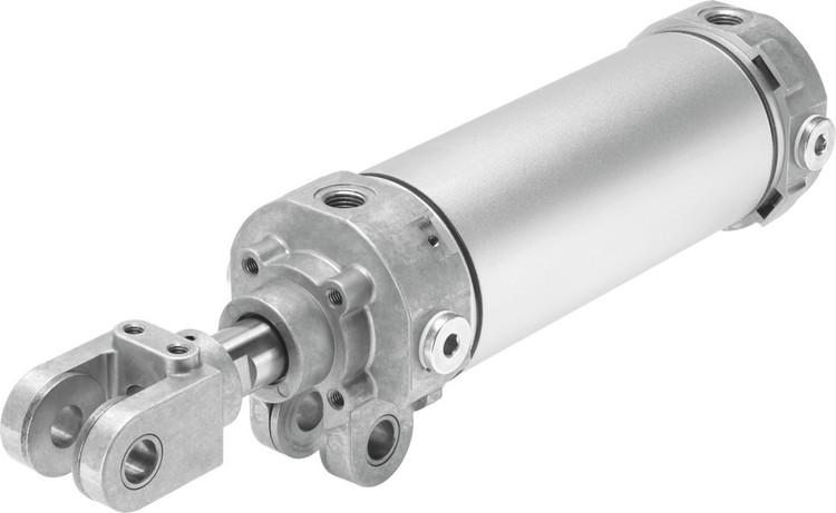 Ideal for clamping parts in welding processes: the round cylinder DW in articulated design. Clevis on bearing cover.